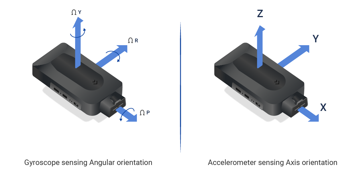 Gyroskop: Misst die Winkelgeschwindigkeit und Drehbewegungen eines Objekts, sodass Lage- und Rotationsänderungen genau verfolgt werden können.